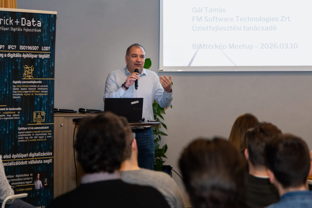 A meetupot a BIMtérkép alapítója, Kovács Ádám nyitotta meg, aki bevezető előadásában köszöntötte a résztvevőket, és felvezette az est témáját. Az idei első meetup fókuszában a BIM és az üzemeltetés kapcsolata állt: hogyan jelenik meg a BIM szemlélet az épületek működtetésében, és milyen lehetőségeket kínál a digitális információkezelés a facility management területén.